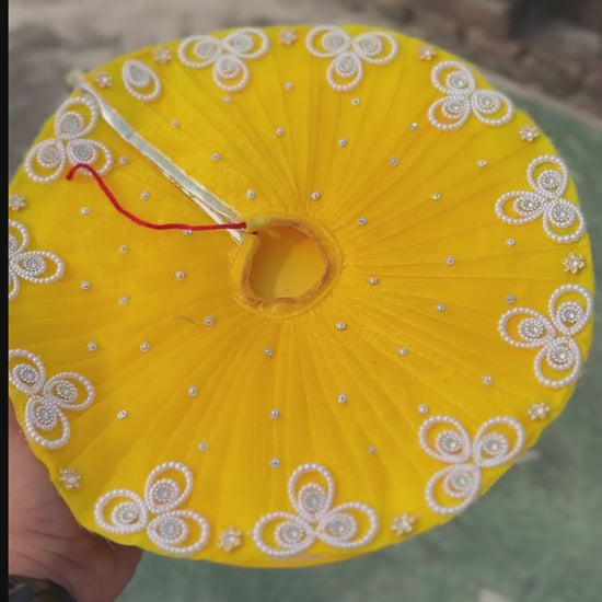 “Radha Madhav Brand proudly presents the yellow color Handmade Poshak – a divine attire crafted with love and devotion in the sacred land of Braj. Every design carries the essence of Braj’s traditional artistry, bringing elegance and spiritual charm to your deity’s shringar.