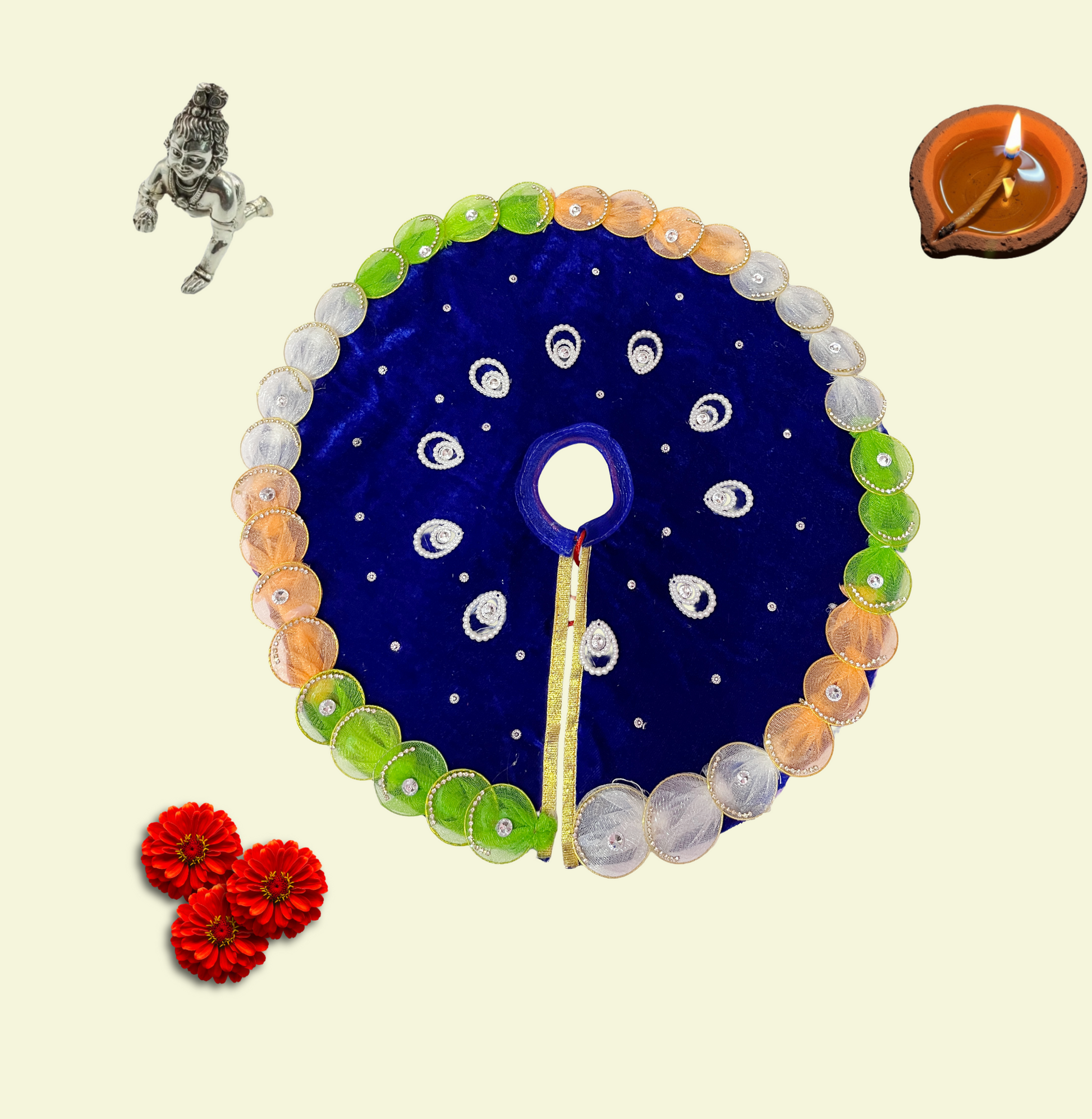 Apne mandir ko divya roop dene ke liye hum laaye hain Radha Madhav Brand ka ek anmol poshak – Blue aur Green rangon ke sajh-sundar sangam ke saath, white border se sushobhita.