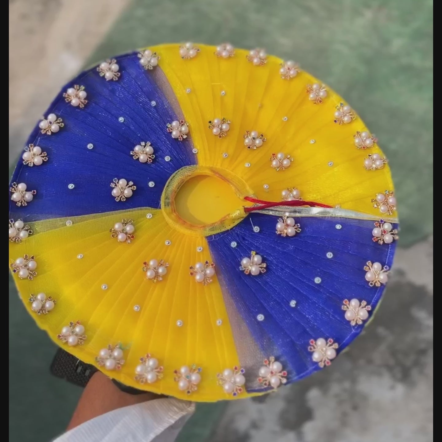 “Radha Madhav Brand proudly presents the Yellow and Blue Handmade Poshak – a divine attire crafted with love and devotion in the sacred land of Braj. Every design carries the essence of Braj’s traditional artistry, bringing elegance and spiritual charm to your deity’s shringar.