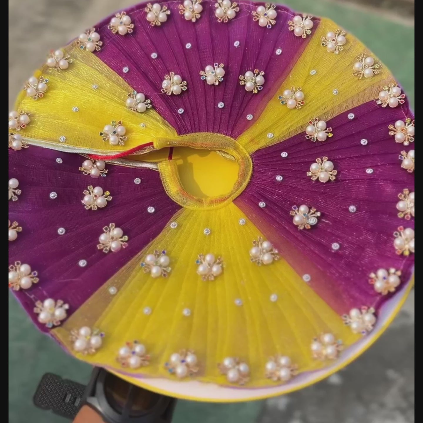“Radha Madhav Brand proudly presents the yellow and pink colorHandmade Poshak – a divine attire crafted with love and devotion in the sacred land of Braj. Every design carries the essence of Braj’s traditional artistry, bringing elegance and spiritual charm to your deity’s shringar.